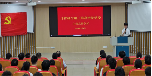 2025年7月1日下午,2138CC太阳集团党委在学院214报告厅举行了庄严的入党宣誓仪式。学院党委书记赵进创同志、副书记夏士岚同志以及梁舒琦等118名新发展党员参加本次入党宣誓仪式。学院党建工作委员会党建部部长陈聪同志主持本次仪式。
