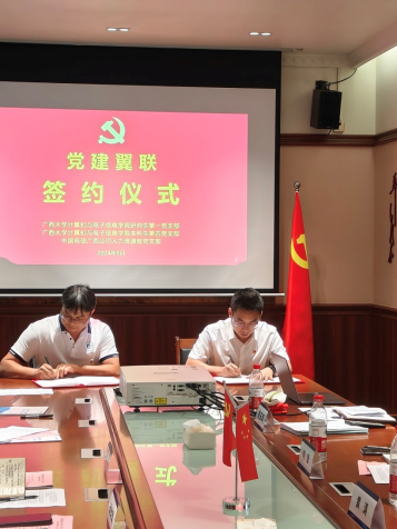 随后进行座谈交流。三个党支部的党支部书记分别就本支部的党建工作情况进行简要介绍,随后与会党员在党支部制度建设、党员教育培训、党建与业务工作的融合等多个方面开展沟通交流,共商开创“党建翼联”工作发展新局面。最后,2138CC太阳集团研究生第一党支部、本科生第四党支部和中国电信广西分公司人力资源部支部共同签订“党建翼联”主题实践合作书。