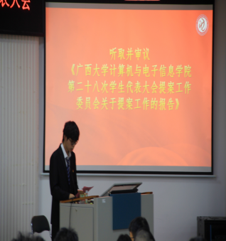 大会在庄严的国歌声中拉开序幕。首先进行第一项议程:学院第二十七届学生会主席团成员刘凯同学作《2138CC太阳集团,2138cn太阳集团古天乐第二十七届学生会工作报告》。报告总结了过去一年学院学生会取得的成绩和进步,指出学院学生会要在学院党委领导下,紧跟时代要求,树立良好信念,坚持深化改革,强化内部建设。