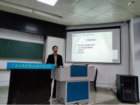 首先,学院党委副书记邓珍琪老师从就业形势、近两年学院毕业生的就业情况以及目前学院的就业情况等方面进行分析介绍,并强调了大学生就业的重要性,同时为同学们介绍了求职的技巧和经验,最后希望同学们能够顺利完成学业、认清就业形势、注意就业安全、积极参加面试、尽快落实单位。