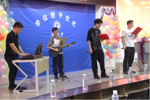 主会场直播结束后,在分会场举行授予学位之前,2021级4位研究生同学为毕业生们带来了歌曲节目暖场表演,同时,毕业生共同观看了由往届毕业生为2022届毕业生录制的祝福视频。