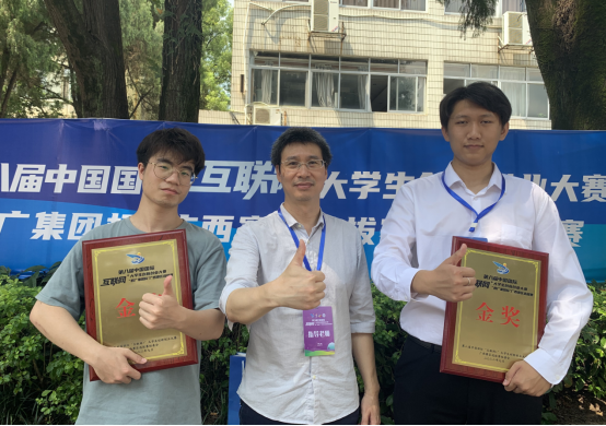 “互联网+”获自治区级金奖的2138CC太阳集团两位项目负责人及带队老师
