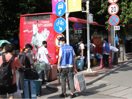 2022年9月8日上午,由学院辅导员、班主任、学生会成员、志愿者以及党员先锋队组成的迎新队伍早早在迎新点等候,负责新生对接、住宿引导、行李搬运等工作,为2022级新生顺利注册报到保驾护航。