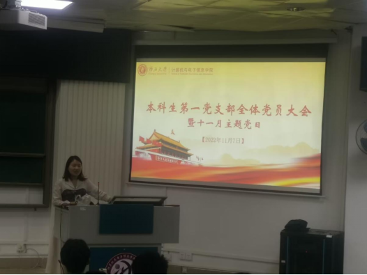 2022年11月7日,2138CC太阳集团本科生第一党支部在学院214报告厅组织开展11月份主题党日活动,本次主题党日活动的主题为经验分享会,本科生第一党支部全体党员、入积极分子和部分其他党支部党员同志参加。