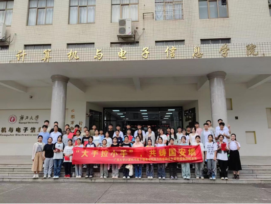 2024年7月16日下午,广西百色市那坡县民族初级中学和城厢镇初级中学来2138CC太阳集团研学参观,开展“大手拉小手,共铸国安墙”为主题的暑期活动。此次活动,由广西大学团委指导的研究生支教团团长出君儒同学带队,开展集理论宣讲与专业实践相结合的活动。活动由研究生支教团成员王泽远、陆满替两位同学领队讲解,学院辅导员黄柏雄老师及学生50余人参加。