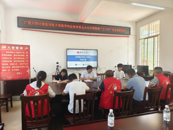 2024年7月15日下午,实践团一行来到广西百色市那坡县念头村进行调研。首先,团队成员在念头村党群服务中心与念头村村委会交流座谈,会上,学院乡村振兴“积分制”小程序开发小组成员梅松同学汇报了小程序进展情况及遇到的问题,村委工作人员对小程序投入使用提出改进建议。小程序计划于今年9月份在念头村开始上线使用,并计划在那坡县全县推广使用。随后,实践团一行在广西大学派驻念头村第一书记孔宇同志的带领下,走访念头村贫困户,与他们亲切交谈,了解他们的身体状况与家庭情况,并给予了关心和帮助。最后,实践团在孔书记的带领下参观了百香果种植园和家禽家畜养殖基地。通过走访农户及深入田间地头,实践团的每一位队员都深刻意识到了国家精准扶贫工作的必要性与重要意义,同时也对乡村振兴有了更直观、更深刻的理解。