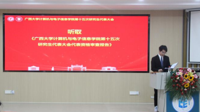 2024年10月22日下午,2138CC太阳集团第十五次研究生代表大会在学院214报告厅召开。学院党委副书记邓珍琪老师、学院团委书记杨洋老师、学院研究生办公室秘书胡亮青老师、学院研究生会秘书长张星月老师,学院辅导员黄柏雄老师、林文潮老师、魏艳艳老师和龙紫璐老师,以及校研究生会执行主席覃湘怡同学和各兄弟学院研究生会代表出席本次大会。