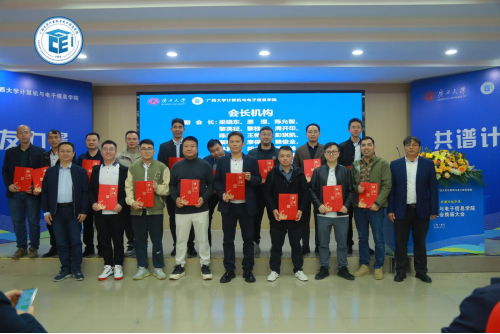 换届大会在《广西大学校歌》声中落下帷幕,全体与会人员在学院门口合影留念。此次大会也得到各地方校友会和兄弟学院校友会的大力支持,他们纷纷发来贺电,广西大学四川校友会和贺州校友会也发来贺信,来自祖国各地的校友们表达了对此次换届大会顺利召开的祝福,并对校友会所发挥的重要作用表示感谢。