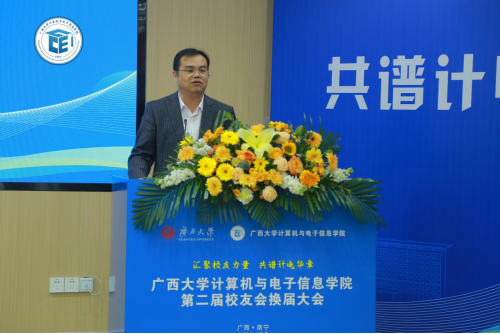 计算机应用专业1991级校友梁晓东作为校友代表发言,他感谢学院对自己多年的指导和栽培,并表示一定会秉承“勤恳朴诚”的校训,以“凝聚校友、服务校友、服务母校、服务社会”为宗旨,以身作则深耕自己的领域,不断致力于学院学科发展和校友工作,为学院高质量发展做出新贡献。
