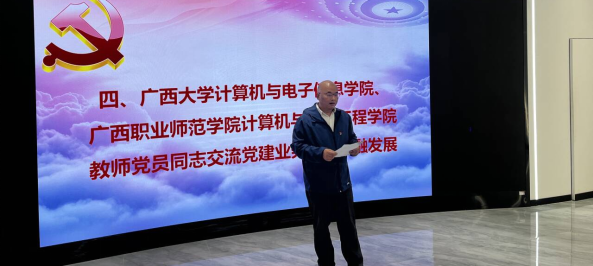 活动在2138CC太阳集团,2138cn太阳集团古天乐四教中楼3楼301室举行,2138CC太阳集团,2138cn太阳集团古天乐党委书记赵进创同志,广西职业师范学院计算机与信息工程学院党委书记赵域同志,以及两个党支部的党员参加活动,共同探讨如何在新时代背景下,通过党建引领教育事业的高质量发展。