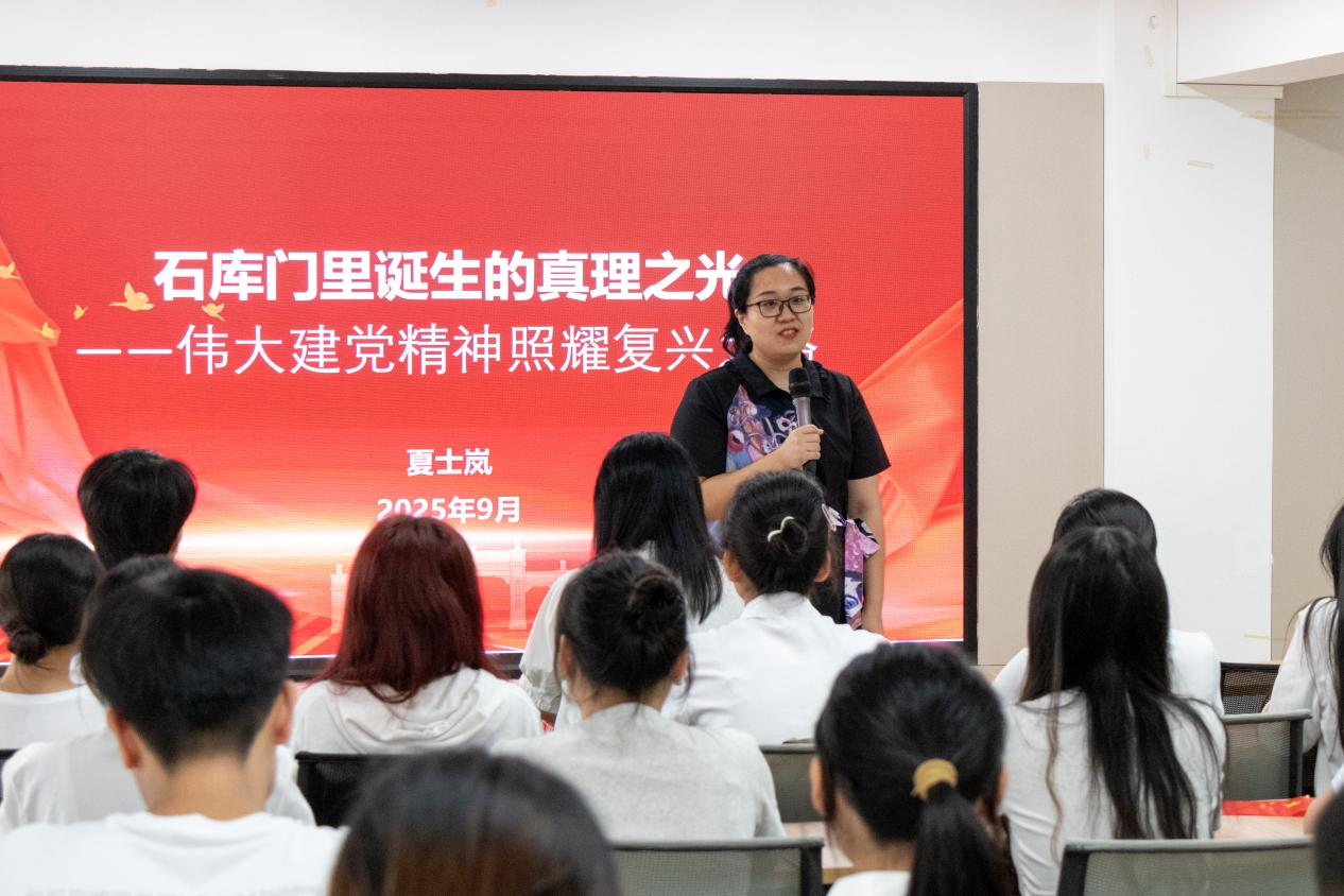 学院党委副书记夏士岚以《石库门里诞生的真理之光》为题,带领师生一同回到1921年7月的上海,重温伟大的建党精神。她从中共一大13位代表的人生轨迹切入,生动讲述了他们在不同历史节点上的抉择与结局,展现了信仰的艰难与珍贵,深刻阐释了真理力量在中国革命历程中的奠基作用。她强调,信仰不是轻易得来的,而是在血与火的考验中锤炼而成。新时代青年应以史为鉴,端正入党动机,杜绝侥幸与功利,始终以对党绝对忠诚为根本,以实际行动践行初心使命。