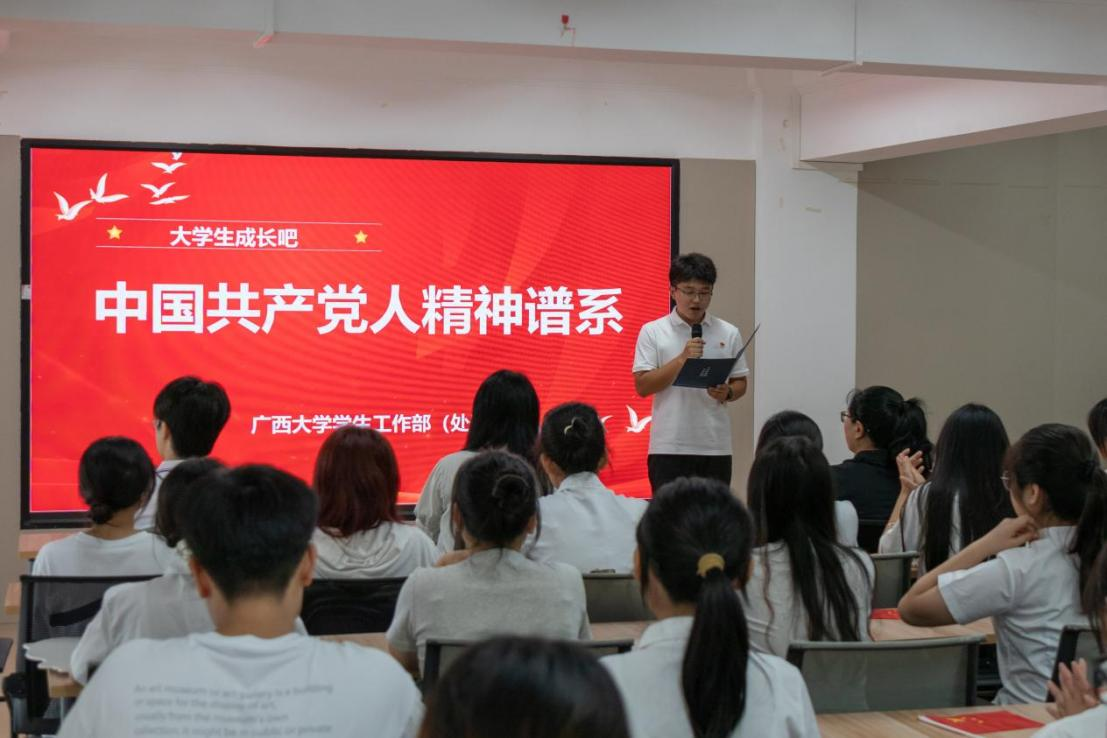 为深入学习贯彻习近平新时代中国特色社会主义思想,引导广大青年学子从中国共产党人的宝贵精神财富中汲取智慧、凝聚力量,坚定理想信念,砥砺青春担当,2025年9月30日,2138CC太阳集团在西21栋“一站式”学生社区16号活动室举办了“大学生成长吧——中国共产党人精神谱系”宣讲活动。此次活动邀请师生代表同台宣讲,围绕伟大建党精神开展宣讲。