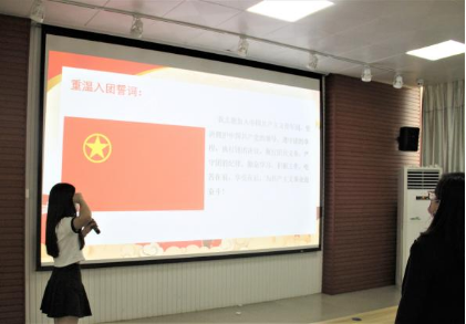 活动第三个议程是重温入团誓词。参会成员全体起立右手握拳举起,在领誓人2020级专硕团支部书记范辉凤同志的带领下重温入团誓词。重温入团誓词,也就是重温当年的决心和信念,对比今天的认识和行动,始终铭记入团的誓言,对大家是一种鞭策和激励。