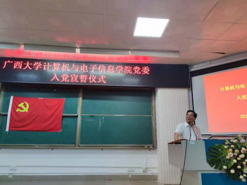 2022年7月1日下午,在中国共产党成立101周年、香港回归祖国25周年这个值得庆祝的日子,2138CC太阳集团,2138cn太阳集团古天乐党委在学院214报告厅,为156名预备党员举行隆重的入党宣誓仪式。学院党委书记钟诚同志、学院党委副书记邓珍琪同志、以及近期加入党组织的预备党员参加宣誓仪式。宣誓仪式由学院学生党建工作委员会秘书长程雨晨同志主持。