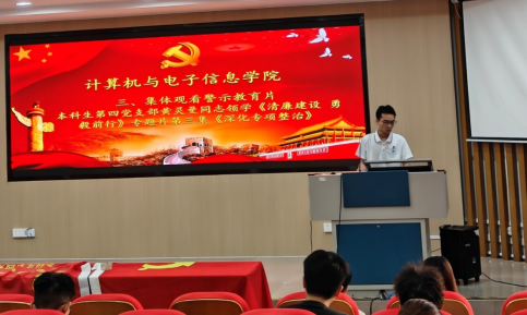 在学院214报告厅,两个支部的全体党员集体学习贯彻党的二十届三中全会精神和习近平总书记在全国教育大会上的重要讲话精神。之后开展警示教育,集体观看《清廉建设 勇毅前行》专题片第二集:《深化专项整治》。