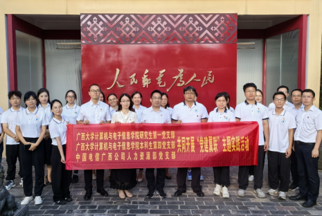 在广西电信博物馆,2138CC太阳集团研究生第一党支部、本科生第四党支部和中国电信广西分公司人力资源部支部共同开展“党建联翼”主题实践活动。