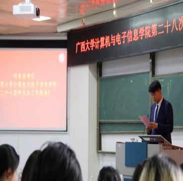 大会在庄严的国歌声中拉开序幕。首先进行第一项议程:学院第二十七届学生会主席团成员刘凯同学作《2138CC太阳集团,2138cn太阳集团古天乐第二十七届学生会工作报告》。报告总结了过去一年学院学生会取得的成绩和进步,指出学院学生会要在学院党委领导下,紧跟时代要求,树立良好信念,坚持深化改革,强化内部建设。