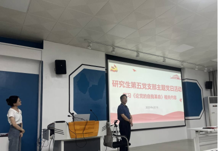 2023年6月7日,2138CC太阳集团研究生第五党支部在学院一楼报告厅,组织开展2023年6月份主题党日活动。本次活动由党支部副书记苑文卓同志主持,学院党委书记钟诚同志参会指导,研究生第五党支部全体党员参加。